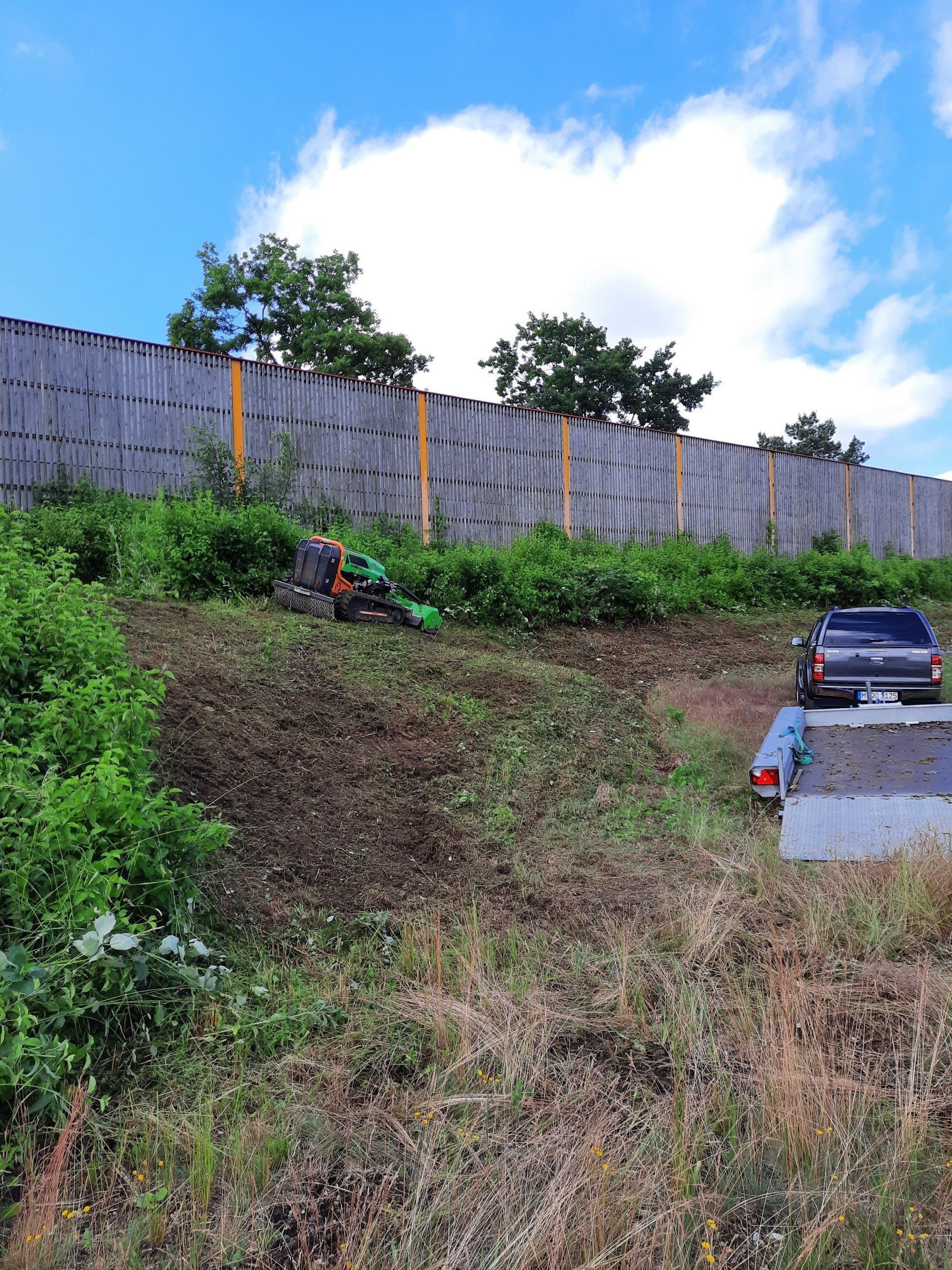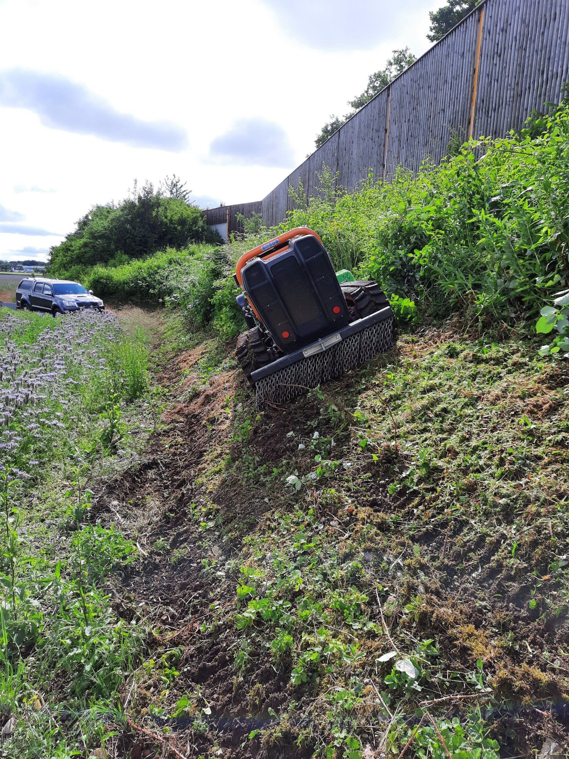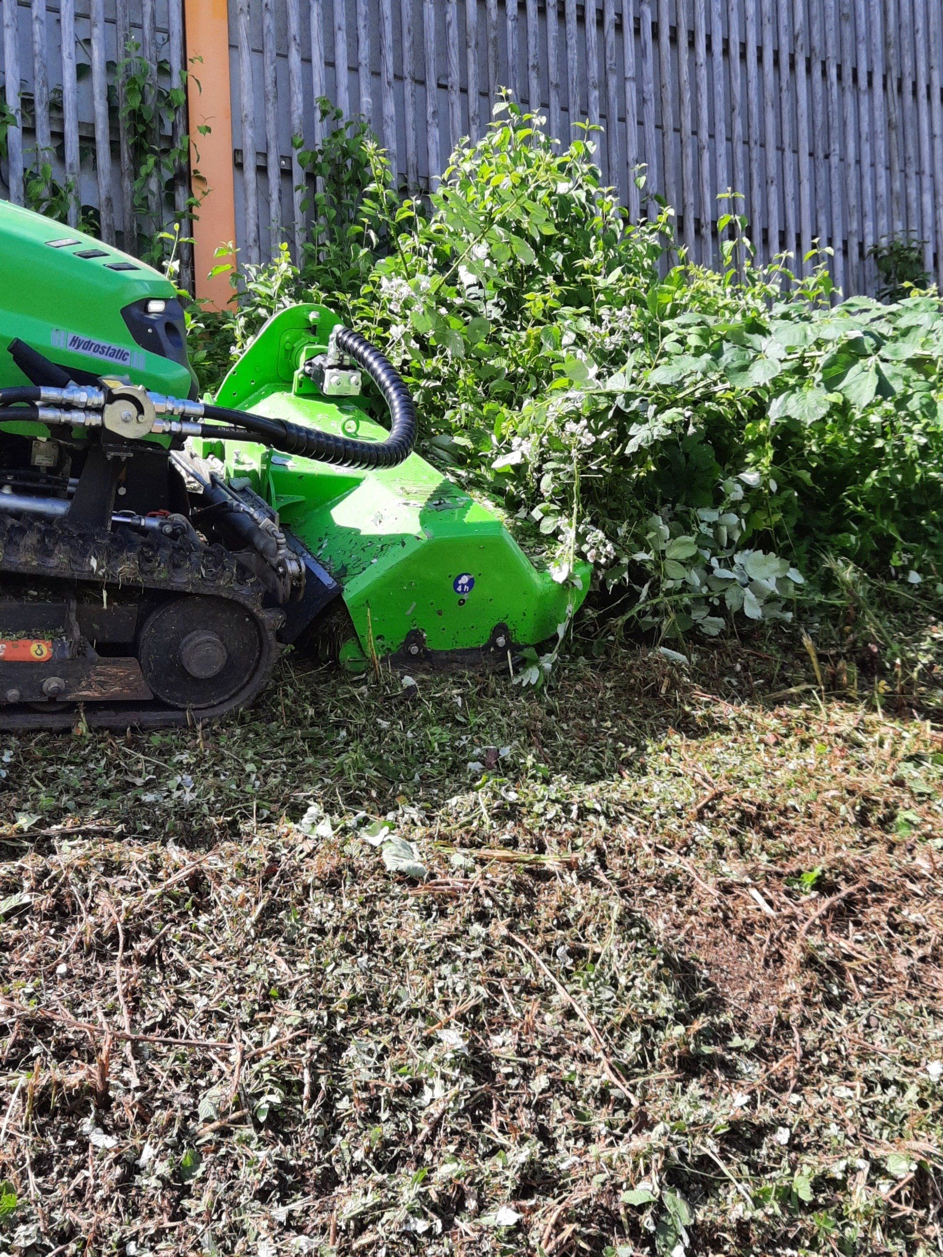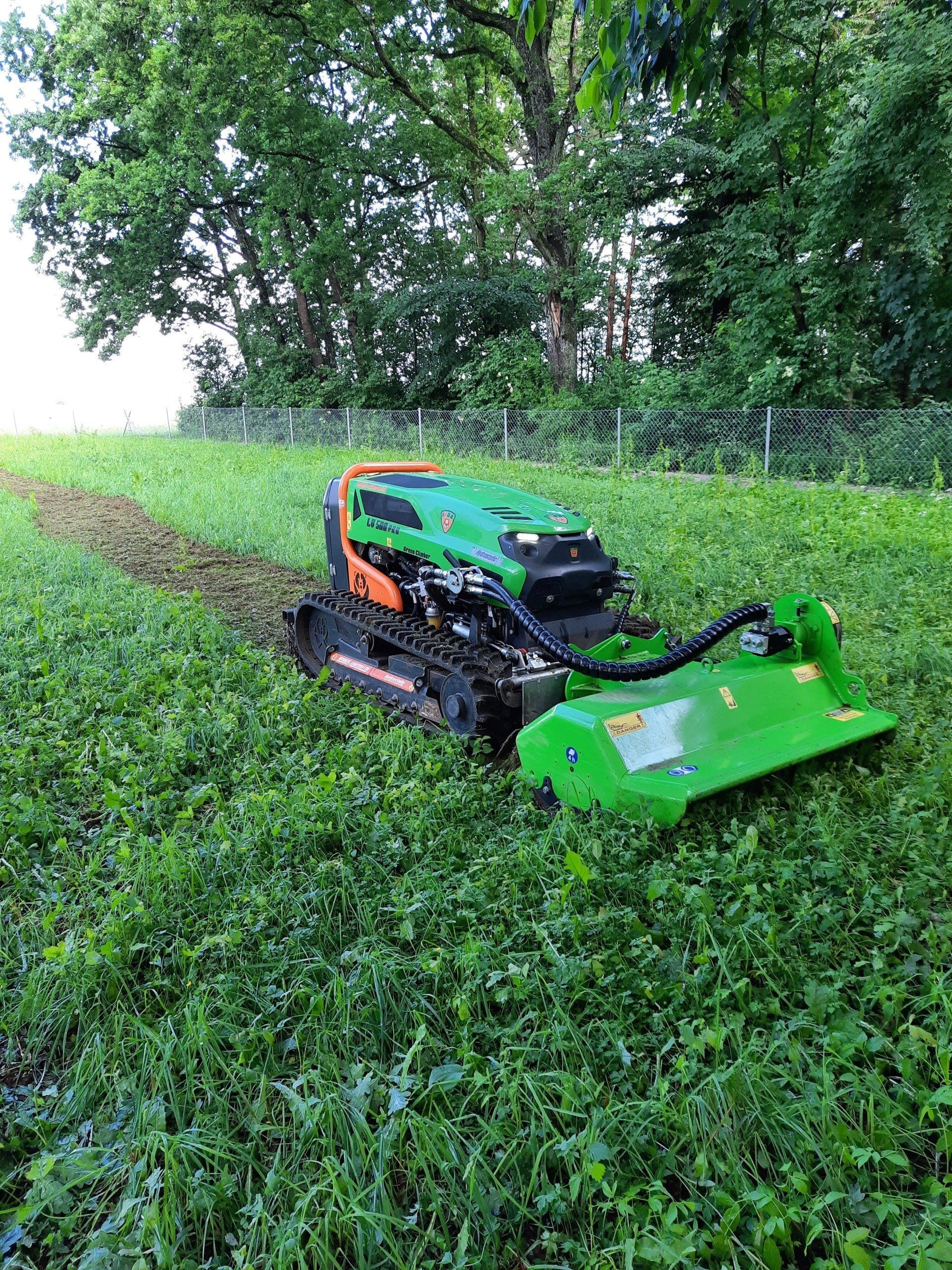 Unsere 49 PS starke funkgesteuerte Raupe der Firma MDB besticht durch ihre vielseitigen Einsatzmöglichkeiten in der Landschaftspflege.